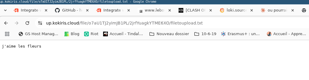 utilisateur1@kks1984:~# curl https://up.kokiris.cloud/file/o7aU1TJ2yimJB1PL/2jrfYuagkYTME6XO/filetoupload.txt