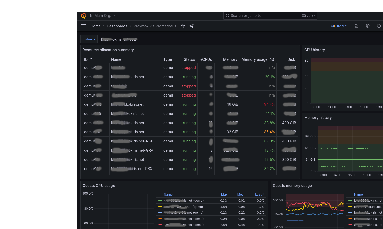 Précédement assurée par le couple Telegraf/InfluxDB, c’est dorénavant la stack Prometheus/Grafana épaulé par Consul qui modernise la métrologie chez Kokiris.